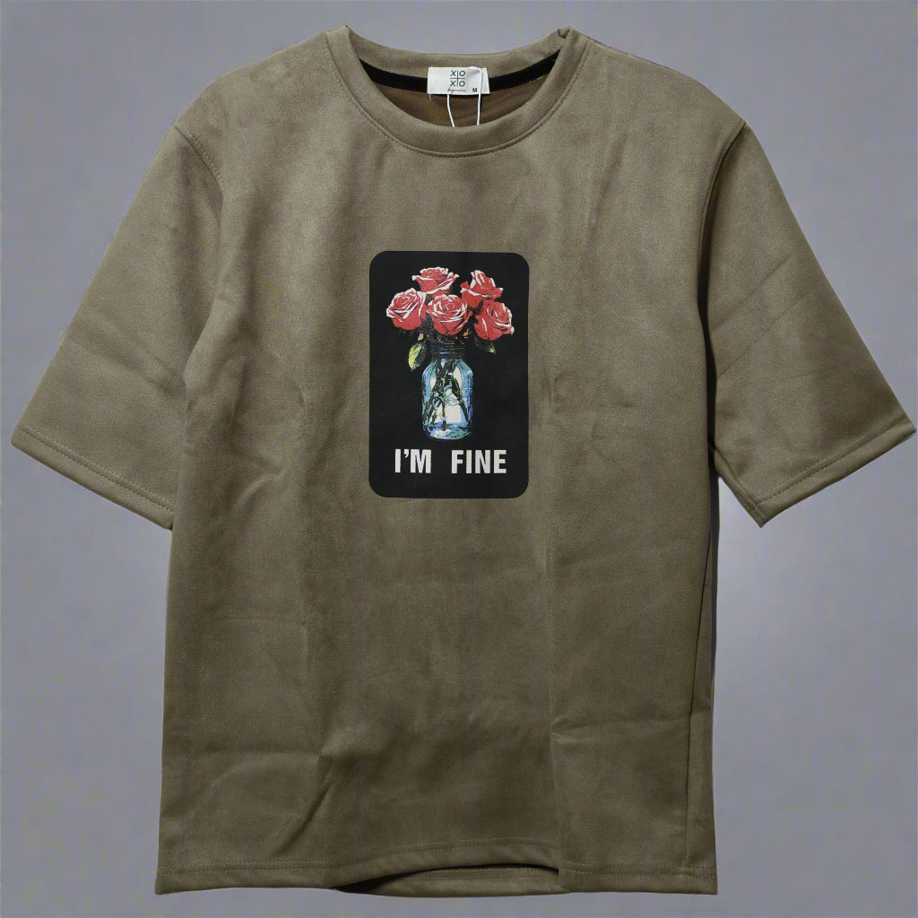 I Am Fine Print Oversized Suede Finish T-Shirt